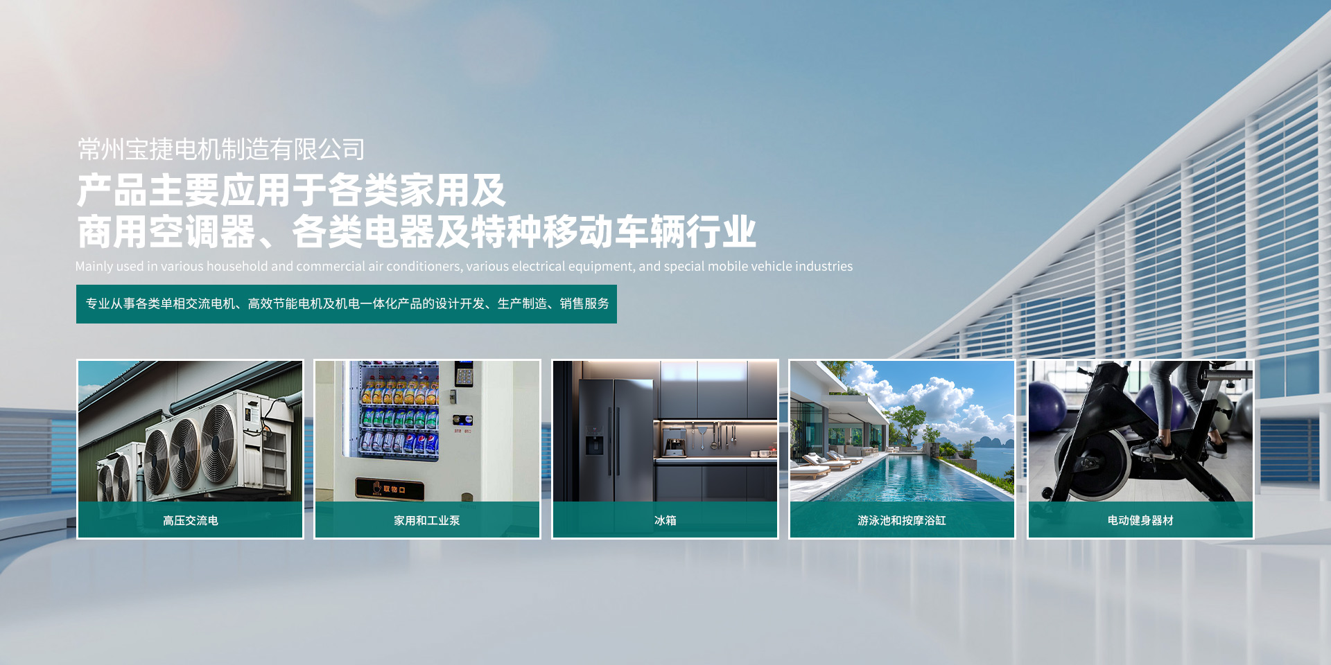 常州寶捷電機制造有限公司,成立于2001年。專業從事各類單相交流電機、高效節能電機及機電一體化產品的設計開發、生產制造、銷售服務的中美合資企業。產品主要應用于各類家用及商用空調器、各類電器及特種移動車輛行業。產品符合UL、CE、CSA、SASO、CCC、ROHS等國際標準,全部出口歐美等國際市場。公司獲得IATF16949:2016質量體系認證,擁有UL認證實驗室,應用SAP精益管理系統,為國內外客戶提供優質的產品和服務!